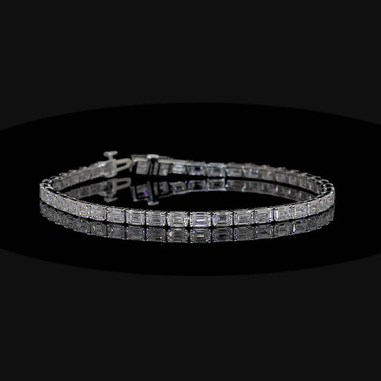 Elevate your elegance with this exquisite tennis bracelet crafted in 14k white gold, showcasing a stunning 4.33-carat display of lab-grown emeralds. Each carefully set stone reflects timeless sophistication, making it a perfect accessory for both everyday refinement and special occasions. This bracelet seamlessly blends classic design with modern brilliance for a truly captivating statement.