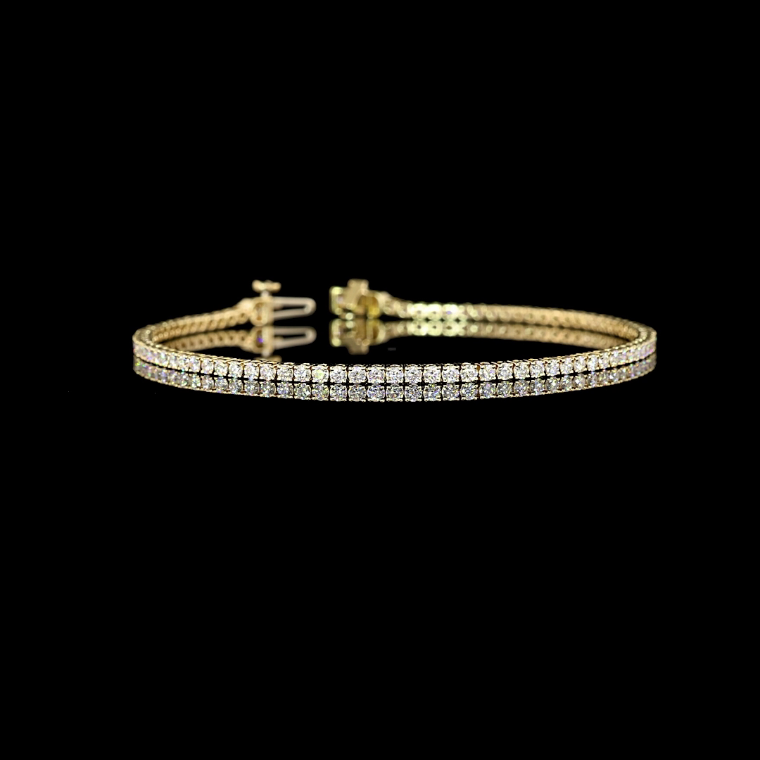 Experience refined luxury with this 2.26ct round cut lab-grown diamond tennis bracelet, expertly crafted in 14k yellow gold. Combining ethical craftsmanship with timeless design, it offers a stunning sparkle that enhances any ensemble. This elegant piece is perfect for those who appreciate sophistication and sustainable beauty in their jewelry collection.